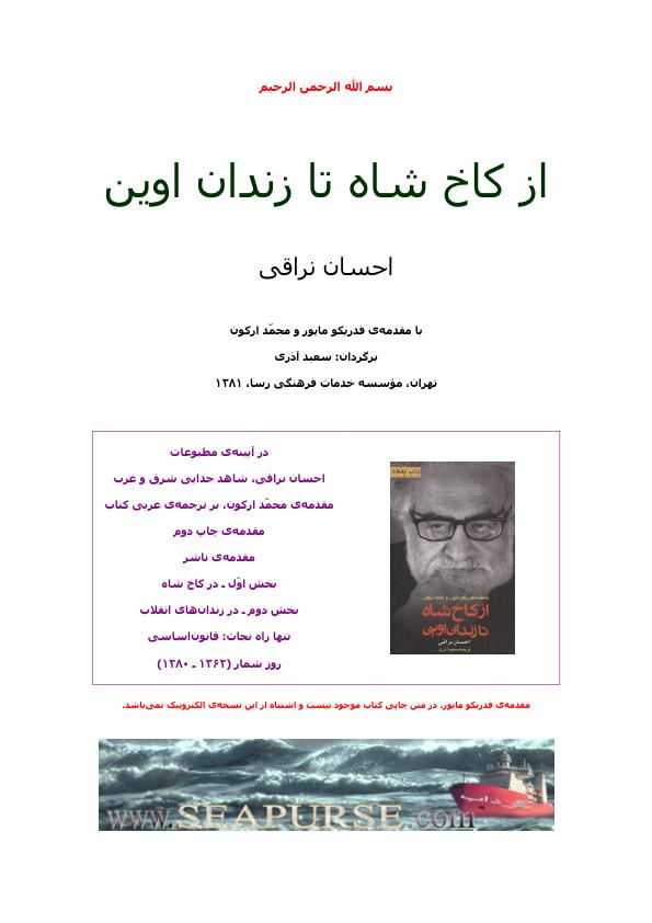 نام کتاب : ازکاخ شاه تازندان اوین  تعداد صفحه : 306 صفحه   حجم فایل : 2.5 مگابایت  فرمت فایل : PDF  دسترسی مادام العمر به فایل  دانلود فایل بلافاصله پس از پرداخت میسر است. (پرداخت با تمام کارت های بانکی میسر است)
