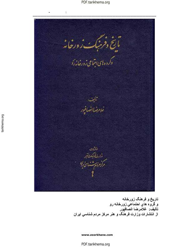 نام کتاب : تاریخ و فرهنگ زورخانه  تعداد صفحه : 250 صفحه   حجم فایل : 4.1 مگابایت  فرمت فایل : PDF  دسترسی مادام العمر به فایل  دانلود فایل بلافاصله پس از پرداخت میسر است. (پرداخت با تمام کارت های بانکی میسر است)