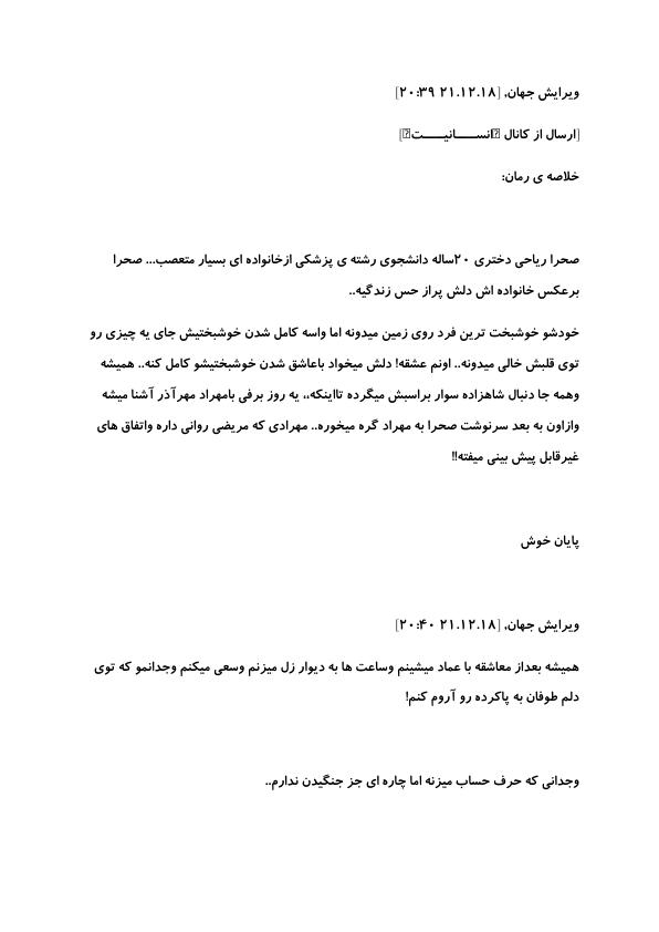 صحرا ریاحی دختری ۲۰ساله دانشجوی رشته ی پزشکی ازخانواده ای بسیار متعصب… صحرا برعکس خانواده اش دلش پراز حس زندگیه..